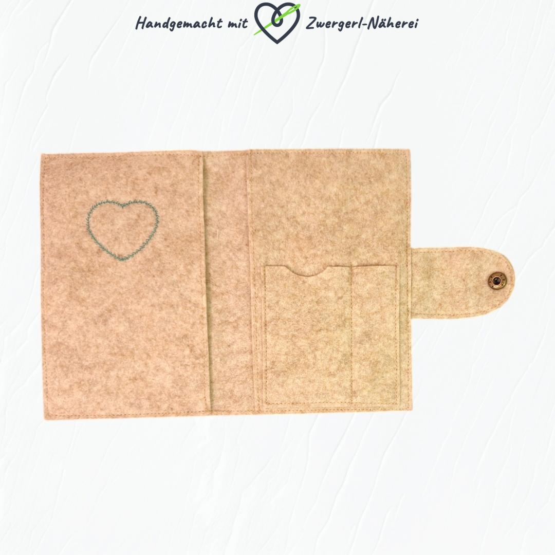 Edle Mutterkindpass-Hülle hellbeiger Wollfilz mit Schildkröten-Stickapplikation aussen und eingesticktem Herz innen. Schütze deine wertvollen Dokumente und den Mutterkindpass stilvoll mit unserer exklusiven Mutterkindpass-Hülle aus hochwertigem Merino-Wollfilz. Die elegante Optik macht daraus ein modisches Accessoire, das du immer bei dir tragen kannst. Erlebe die maximale Funktionalität und stilvolle Eleganz in einem Produkt. Lass dich von den praktischen und eleganten Vorteilen dieser exquisiten Mutterkindpass-Hülle überzeugen. Shoppe jetzt die exklusive Mutterkindpass-Hülle aus hellbeigem Merino-Woll-Filz. ✓ Stickapplikationen ✓ Exklusives Design ✓ Handmade Qualität aus Österreich!