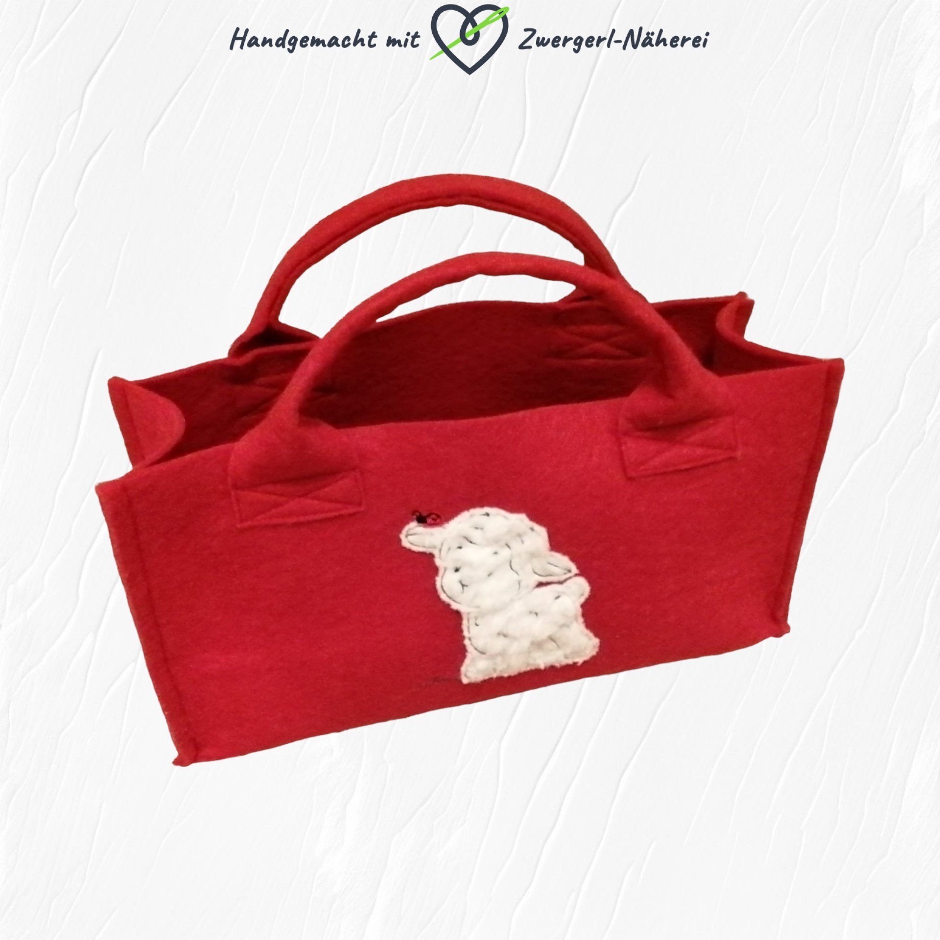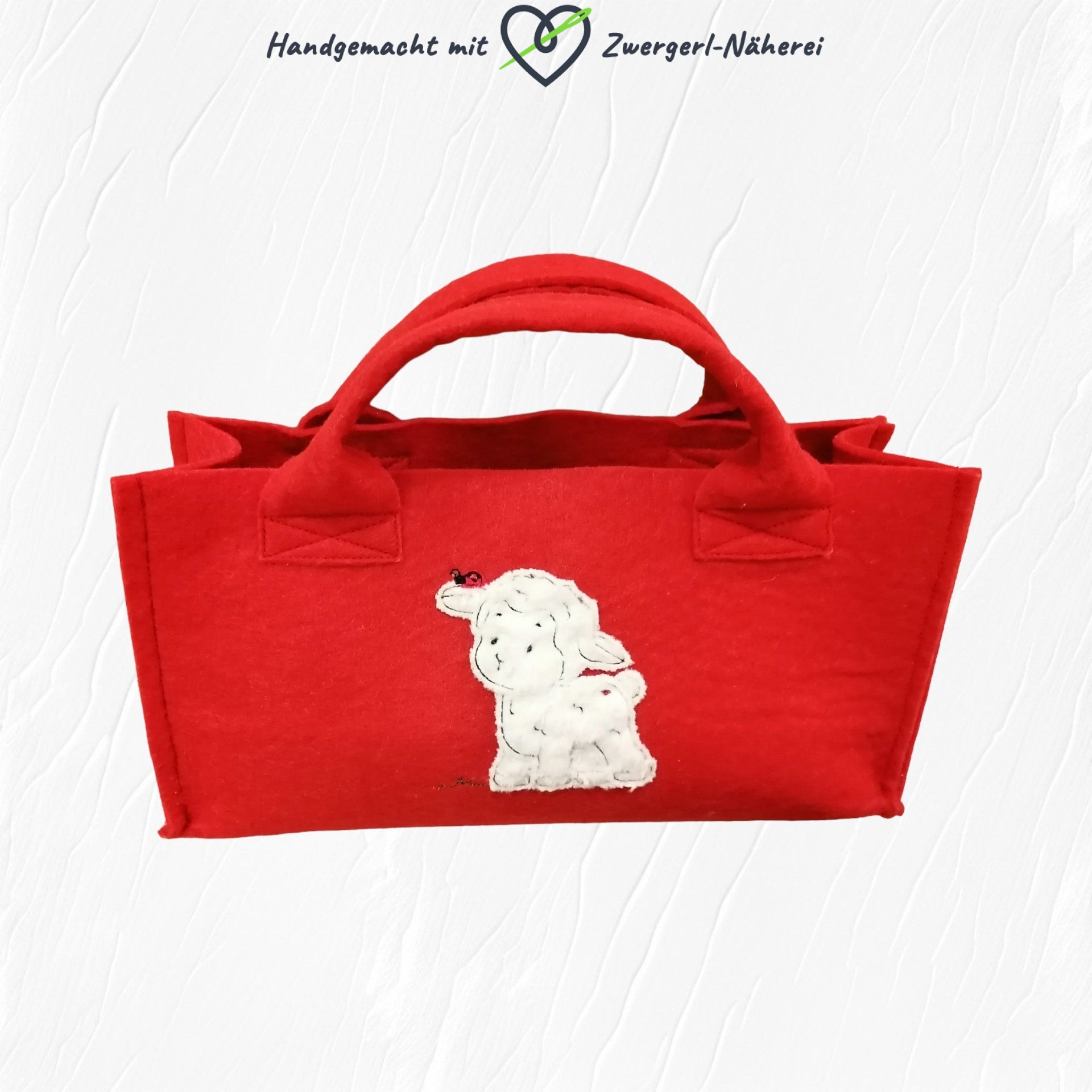 Ostertäschchen Rot Filz mit Schaf-Motiv
