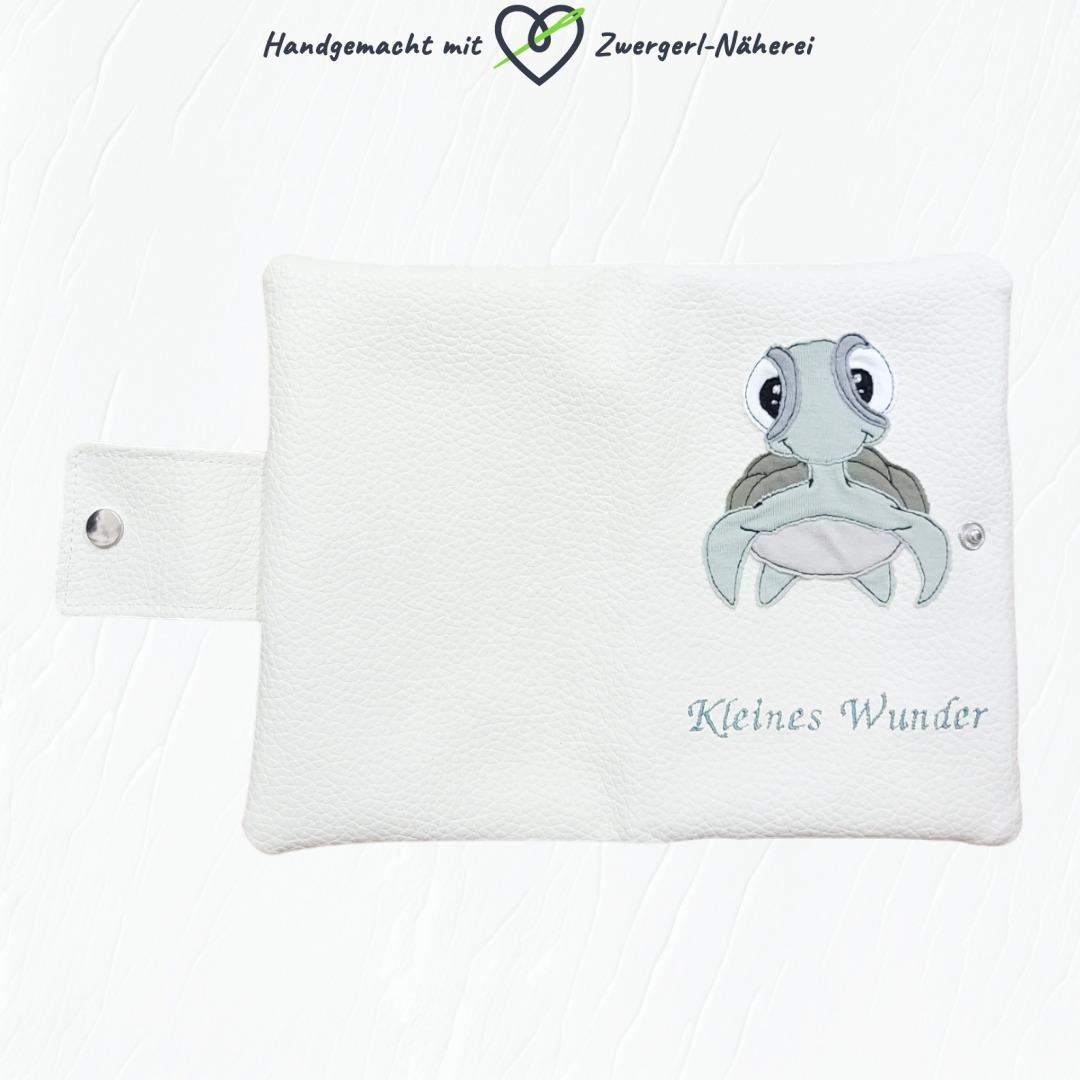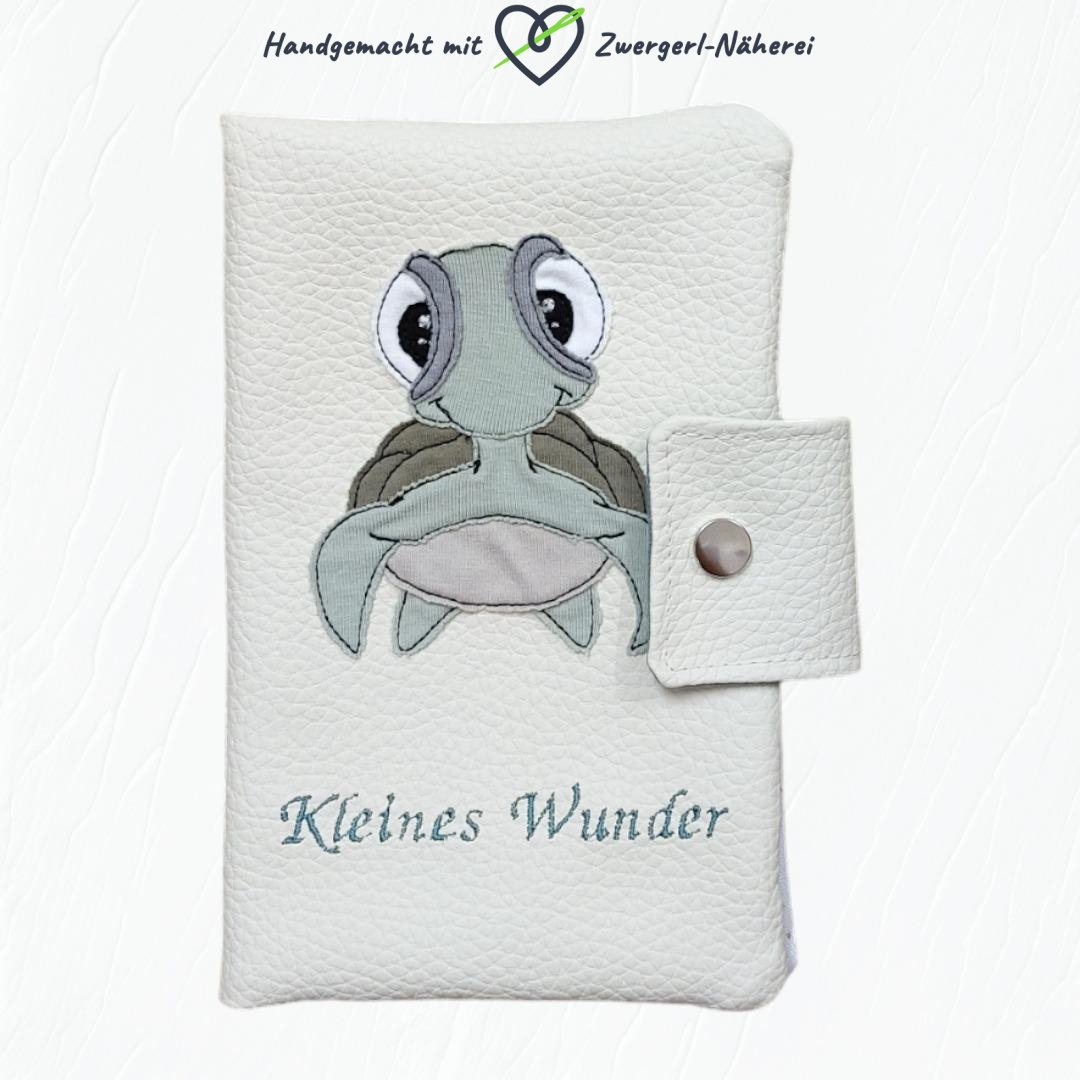 Mutterkindpass Hülle aus cremefarbenem Kunstleder mit Schildkröten-Motiv