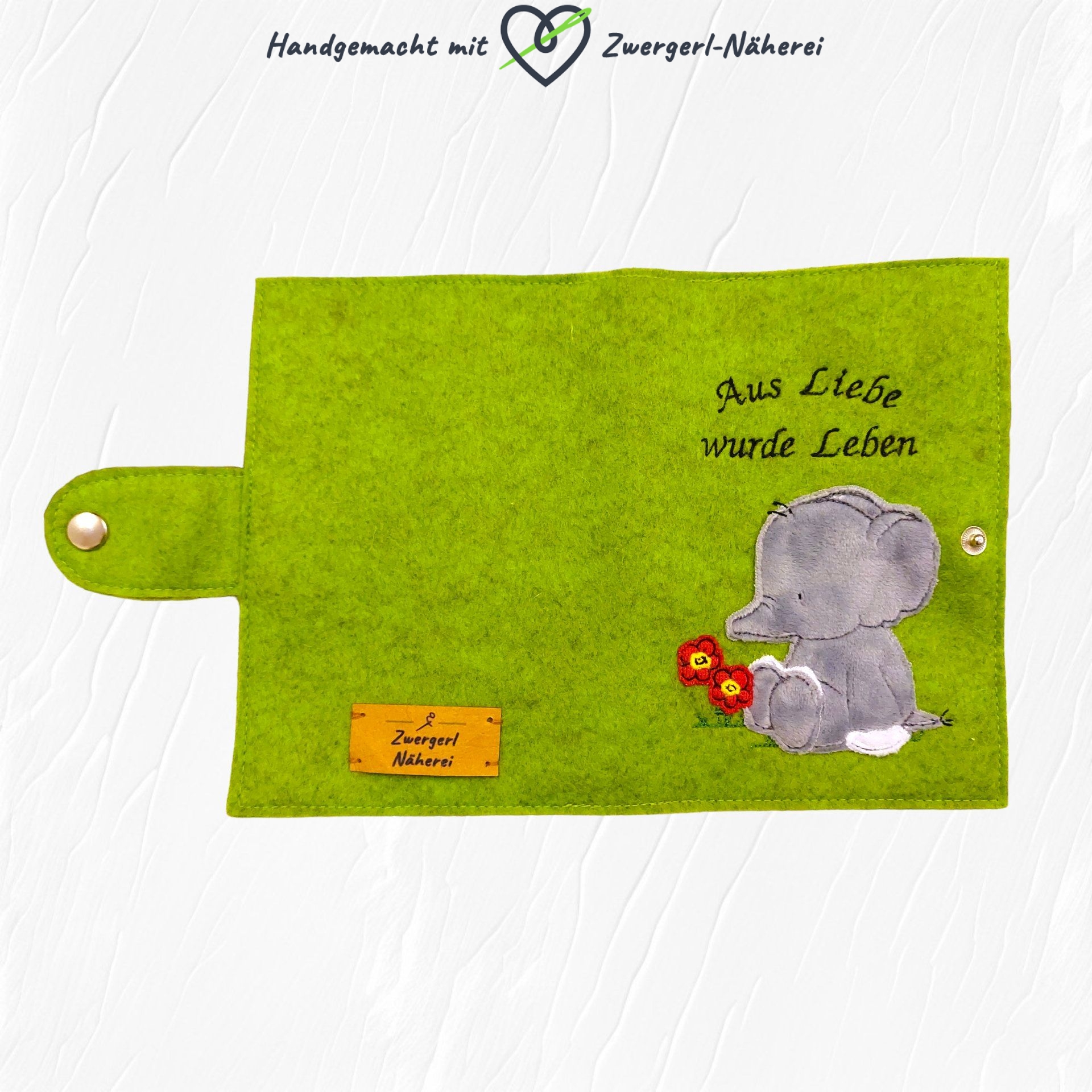 Entdecke deine exklusive Mutterkindpass Hülle aus grünem Filz (Elefant)
