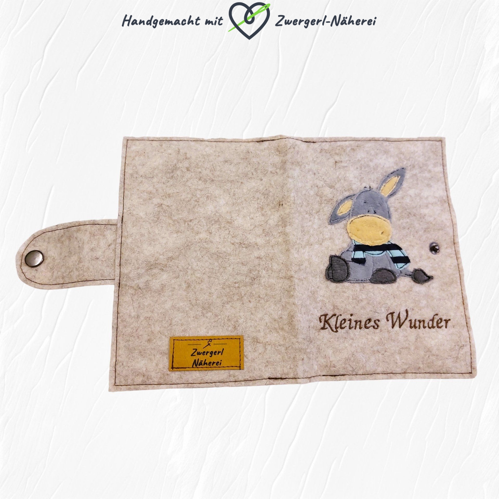 Exklusive Mutterkindpass Hülle aus hellbeigem Filz mit Esel-Motiv