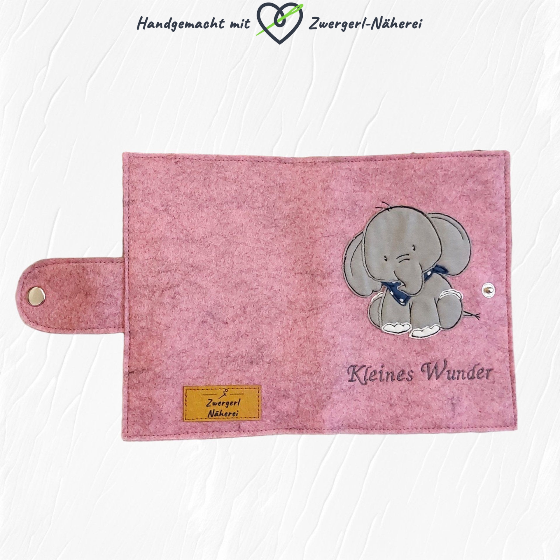 Exklusive Mutterkindpass Hülle aus rosa Filz mit Elefant-Motiv