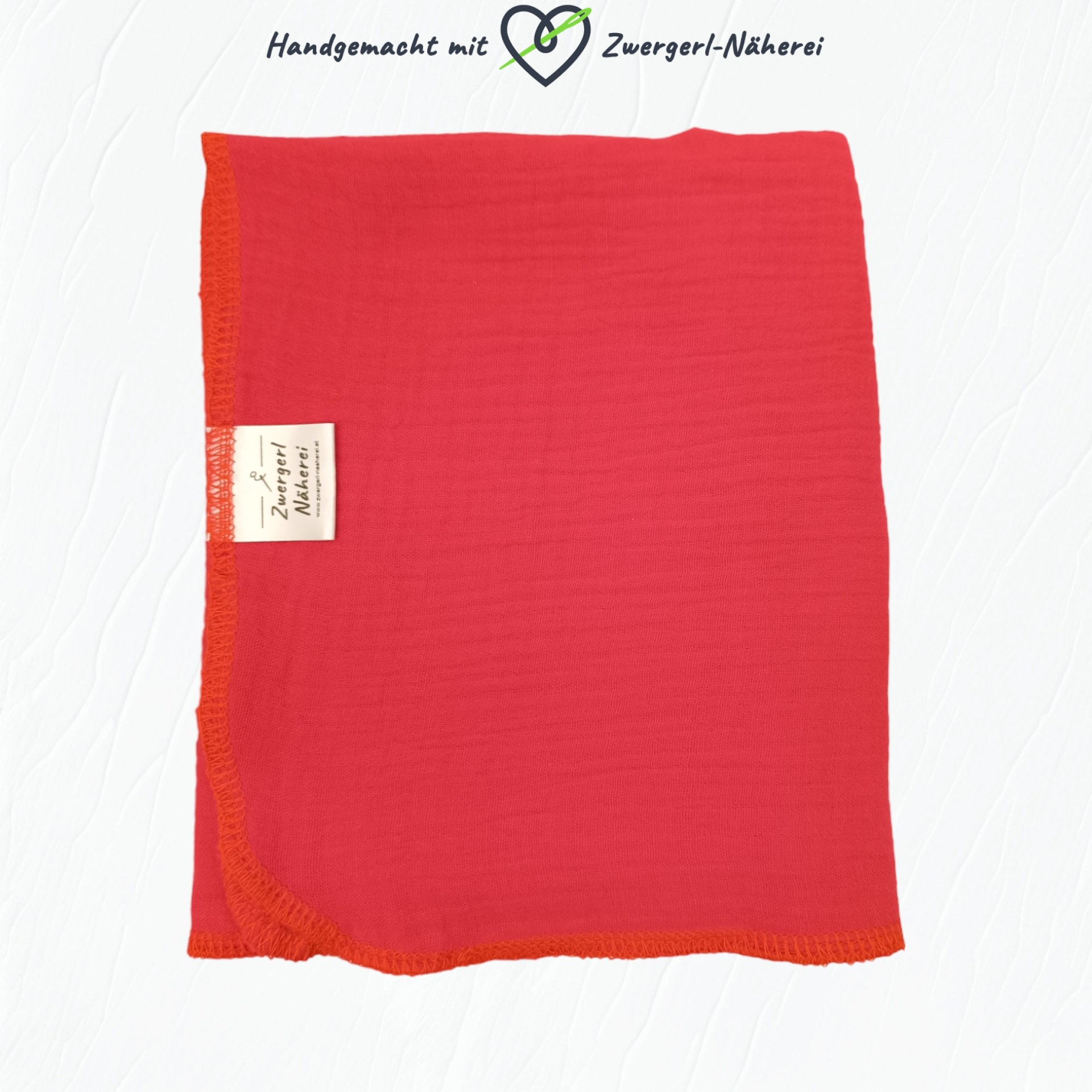 Dieses personalisierbare Pucktuch in Rot aus hochwertigem Bio-Musselin ist das ideale Accessoire für frischgebackene Eltern, die Farbe lieben. Es schenkt deinem Baby Geborgenheit beim Schlafen (Pucken) und überzeugt im Alltag als vielseitiger Begleiter durch seine Saugfähigkeit und Weichheit. Das Tuch wird aus 100% erlesener Bio-Baumwolle gefertigt. Durch die individuelle Gestaltung mit deinem Wunschnamen entsteht ein einzigartiges Unikat – handgemacht in Österreich.